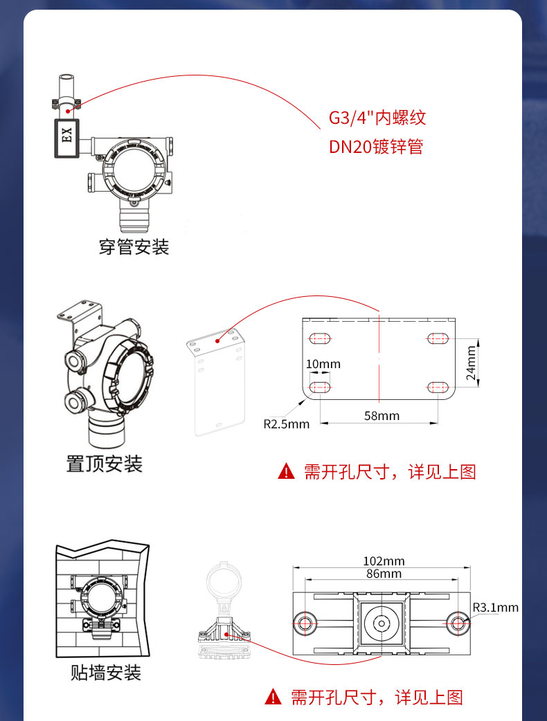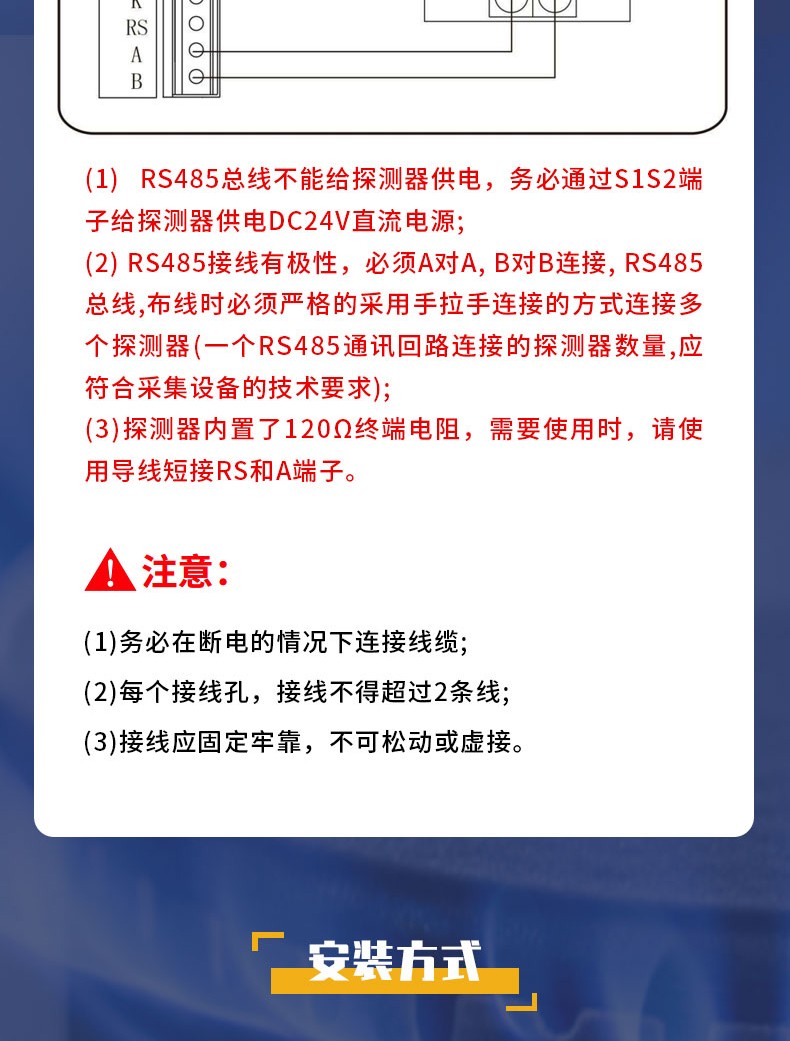 安装方式:贴墙安装,穿管安装,吊顶安装,抱管安装