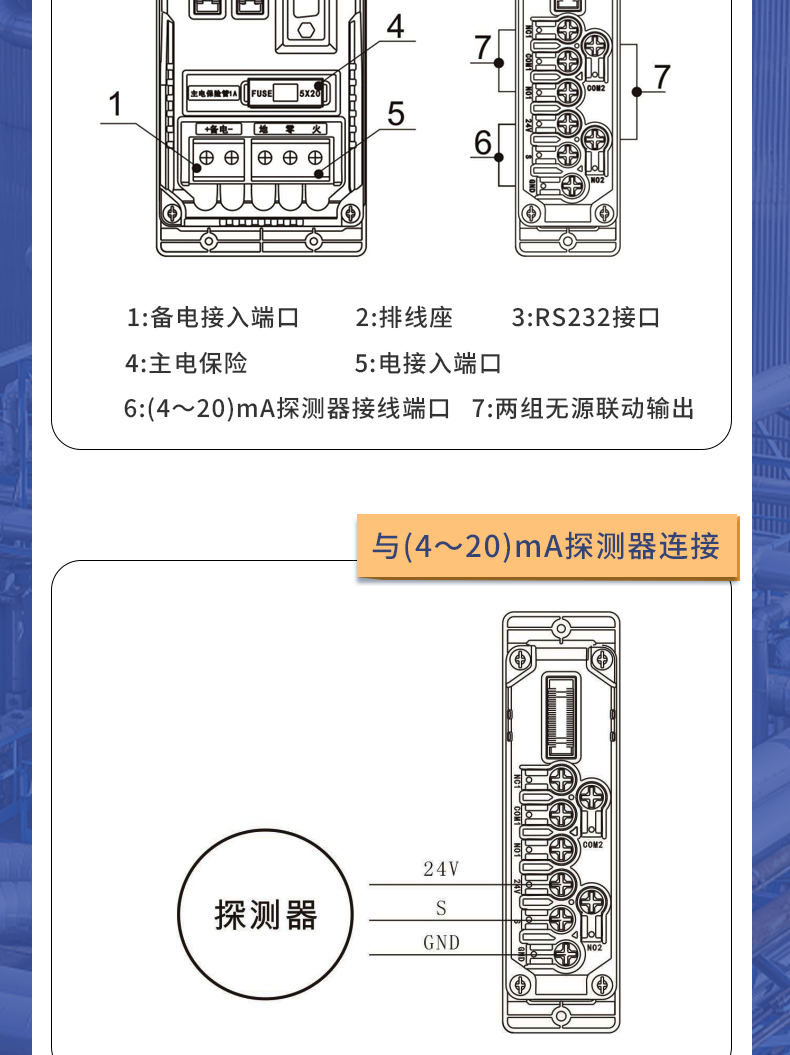 ·支持配接两线制,三线制和四线制4-20mA信号探测器